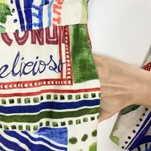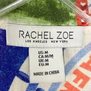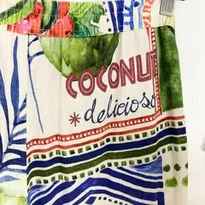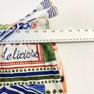 Nwot RACHEL ZOE Pants Women M Linen Tropical-Art Beaded-Tassels Multi Wide-Leg