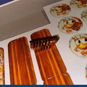 What you get - Bugs in the Kitchen comes with 1 game board, 18 pegs, 1 special Edition HEXBUG Nano, 4 traps, 24 utensils, 20 bug tokens, 1 die, 2 trapdoors and instructions.