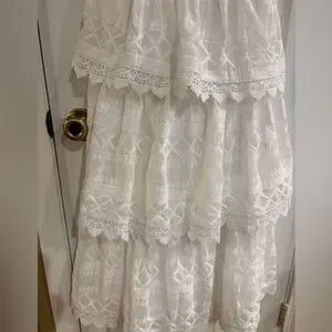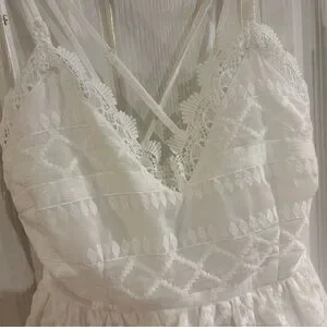 Beautiful tiered white dress from Lulus! Adjustable straps and zipper in the back. Bought for engagement photos but going with a different look!