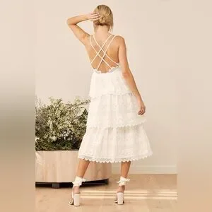 LULUS All Is Love White Tiered Midi Dress S Lace Bridal Shower Rehearsal Dinner