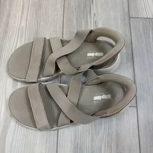Skechers Go Walk Flex Sandal Women's 9 Glimmer Up Slip Ins Taupe 141489