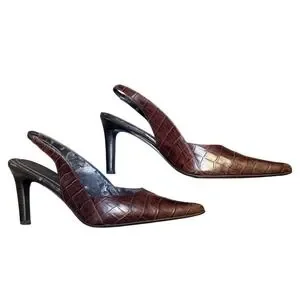 Brown Leather Slingback Heels Pointed Toe Classic Lauren Ralph Lauren 8.5