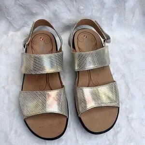 Revere sandals, gold metallic shoes, orthopedic sandals, walking comfort shoe, supportive footwear, travel sandals, casual chic shoes, everyday comfort sandals