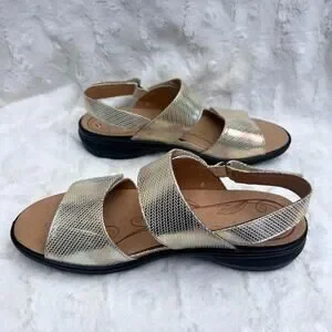 Gold Metallic Two Strap Comfort Sandals Revere Como Orthopedic Walking Shoe