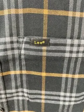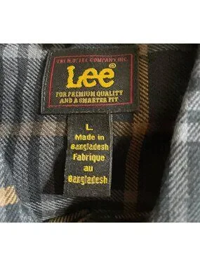 Lee Mens Long Sleeve Plaid Button-Up Shirt Gray & Brown Size Large