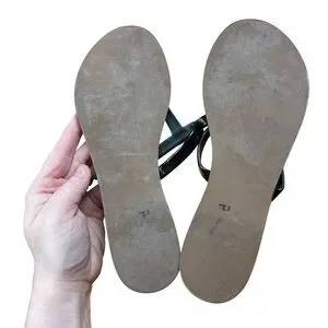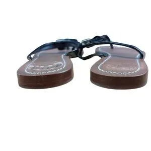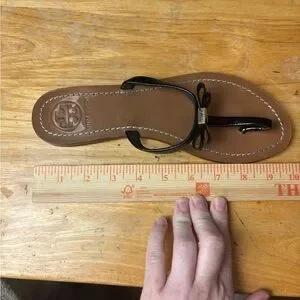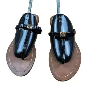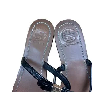 Tory Burch Black Bow Leighanne Thong Sandals Size Gold Logo Size 6 M
