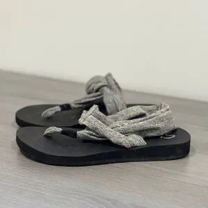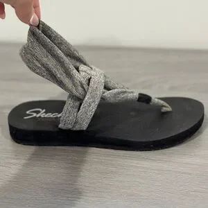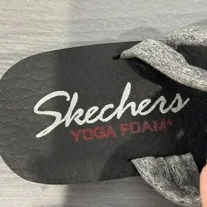 Skechers Yoga Foam Gray Thong Cloth Women’s Sandals (Size 7)