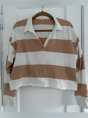 Aerie Sporty Prep Rugby Polo Crop Sz M