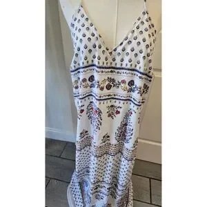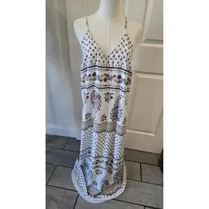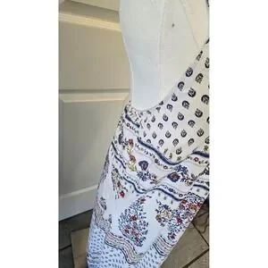 Old Navy Womens Boho Floral Border Print Maxi Dress White Blue Red Large Tall