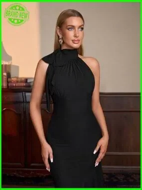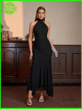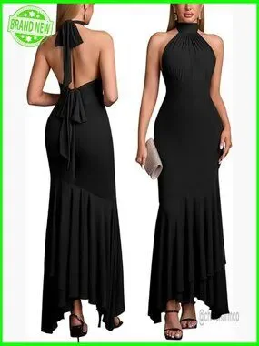 Halter Tie Backless Bodycon Maxi Dress Ruched Cocktail Formal Wedding Guest