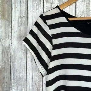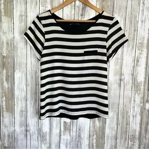 Zara Black White Striped Tee Classic Minimalist Short Sleeve Pocket Top Size S