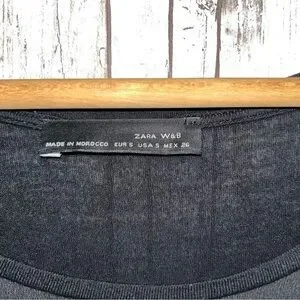 Classic and effortlessly chic, this Zara black and white striped tee is a wardrobe staple. Features a timeless horizontal stripe pattern, short sleeves, and a relaxed fit with a front pocket detail.