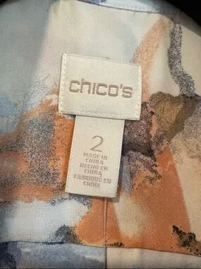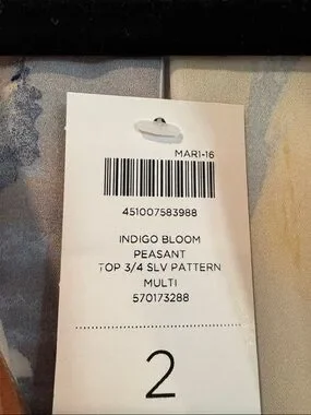 NWT Chico's Indigo Bloom Peasant Floral Tie-Front Blouse Sz 2 (Large)