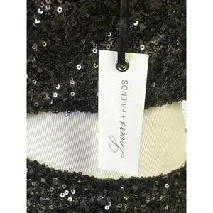 Lovers + Friends Black Sequin Cutout Midi Dress Sleeveless Bodycon Glam L NWT
