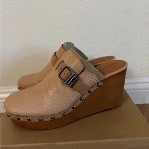 Lucky Brand Tan Clog Heels Dusty Sand Essex Croco Leather NWT Size 11M