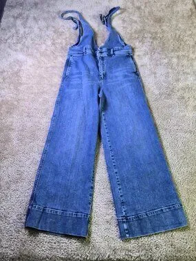 Free People Women's Flare Overalls Size 6 Denim Cottage Indie Wide Leg F858