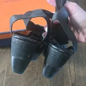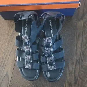 Arturo Chiang Black Strappy Wedges with Embellishments