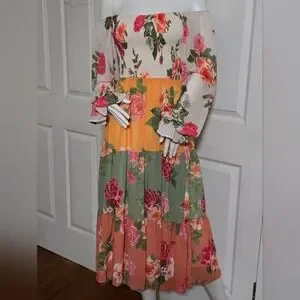 No major flaws noticed unless otherwise stated.Boho, cottagecore, floral midi dress, romantic dress, feminine dress, spring dress, Easter dress, brunch dress, modest dress, tiered dress