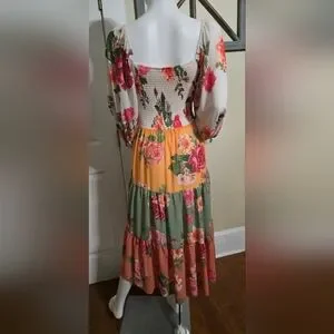 Love Colette Floral Smocked Midi Dress Size M Boho Cottagecore