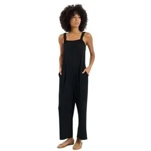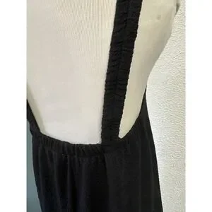 Embrace effortless elegance with this Sundays by We Are Sundays jumpsuit, featuring a beautifully textured black crepe fabric that offers both comfort and sophisticated style. The relaxed, wide-leg silhouette is complemented by thick smocked straps and a gathered neckline, creating a fluid drape that moves with you. Functional side pockets add a practical touch to this versatile piece, making it a go-to for chic, minimalist dressing. This item is in excellent pre-owned condition. Perfect for a casual brunch, a beachside dinner, or a relaxed garden party.