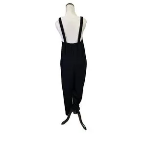 Sundays by We Are Sundays Black Textured Crepe Wide Leg Jumpsuit Small Relaxed