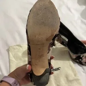Manolo Blahnik Peep-Toe Pumps in Black and Beige Camouflage