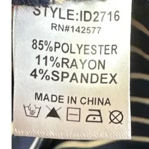 Material: 85% Polyester, 11% Rayon, 4% Spandex