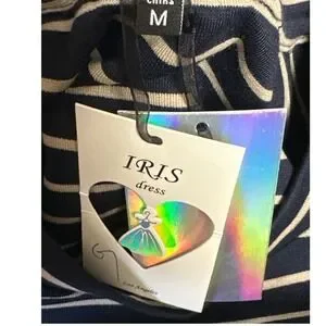 Iris Los Angeles Navy Striped Long Sleeve Tulip Hem Bodycon Dress Nautical M NWT
