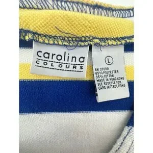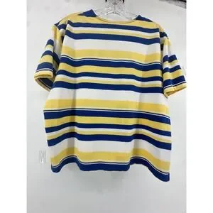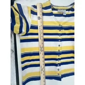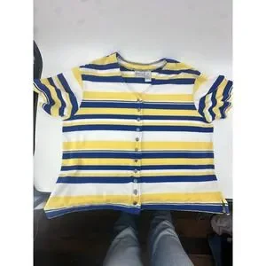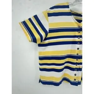 Women's Blue Yellow Striped Button Front Top Size L Game Day Rams Brewers Colors