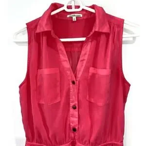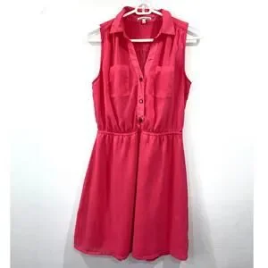 Charlotte Russe Fuchsia Pink Button Up Sleeveless Mini Dress Small S Bright