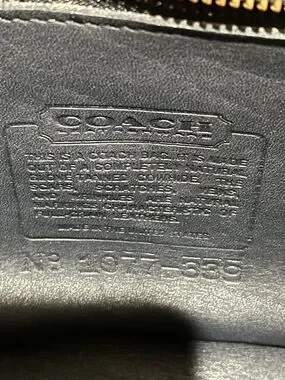 Coach interior leather patch with embossed logo and creed. Smooth black leather lining with clear debossed serial. Used, please see pictures, it’s part of the description.