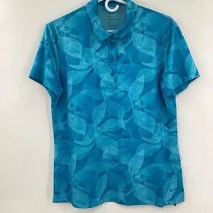Ladies Nike Floral Short Sleeved Golf Polo- Large- Blue