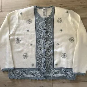Vintage Women's Country Grandma Winter Embroidered Cardigan Sweater Cottage