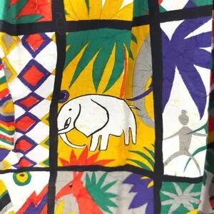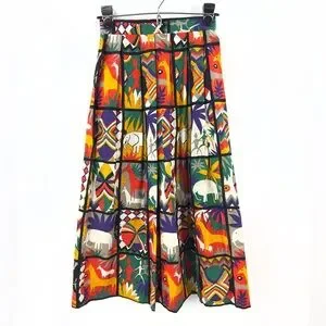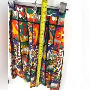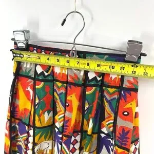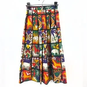 Vintage Safari Midi Skirt Womens 4 Art Statement Colorful Tribal Boho Indie USA