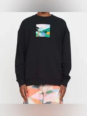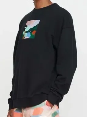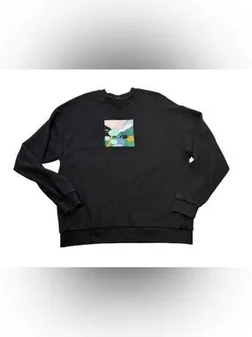 Lazy Oaf Landscape Graphic Embroidered Crewneck Sweatshirt Black Size Medium