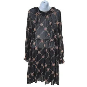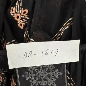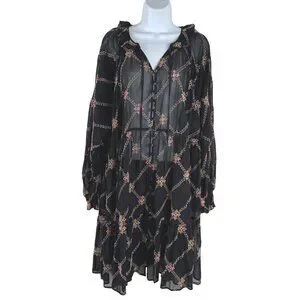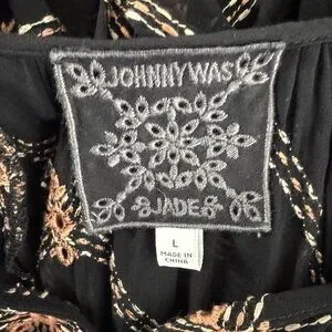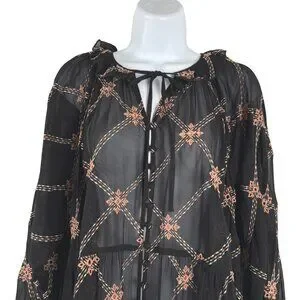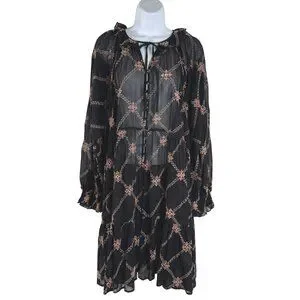 Johnny Was Jackie Mini Dress Large Black Sheer Embroidered Boho Rayon DR-1817