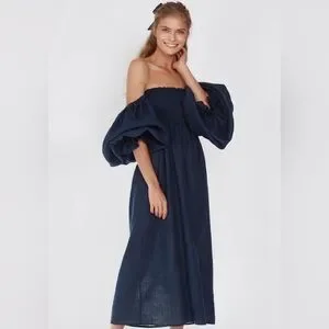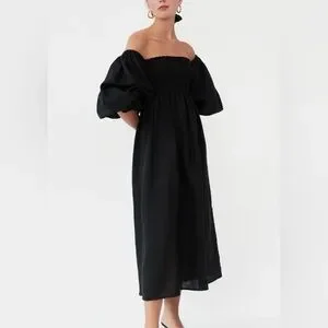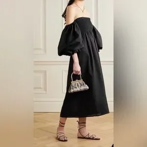 Sleeper NWT Atlanta Black Elegant Smocked Off Shoulder Dress 100% Polyester-M