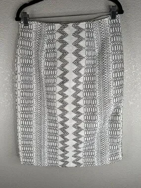 Tory Burch White Black Brown Ruffle Classic Career Modern Minimalist Skirt Sz 10