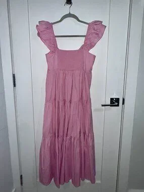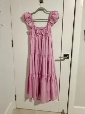 Abercrombie & Fitch Light Pink Ruffle Sleeve Poplin Midaxi Dress SP