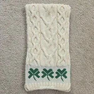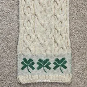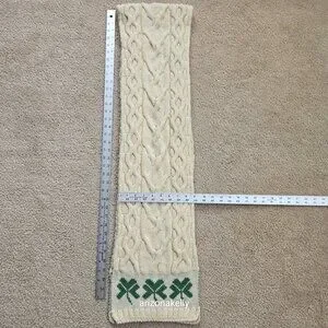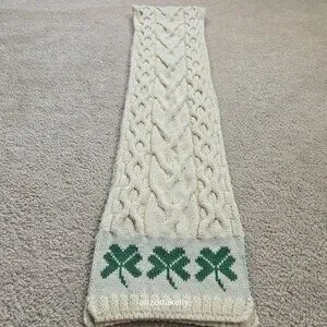 Appears to be completely unused--no flaws, no pet hair, no odor. Supersoft merino wool with three Shamrocks on each end.