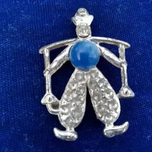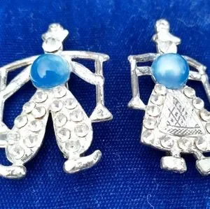 I'm not sure if they're Jack and Jill fetching water or a milkmaid and her friend hauling dairy products, but this pair of brooches are adorable. They appear to have all their stones. The design is attributed to Dujay, which would date them to the 1930s, but I can find no markings on them. Art Deco feel to them.