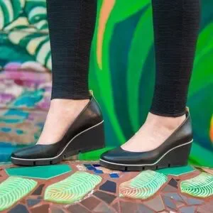 BETABRAND All Weather Wedge Heel In Black Pebbled Leather Slip On Size 11 NEW