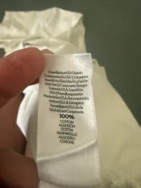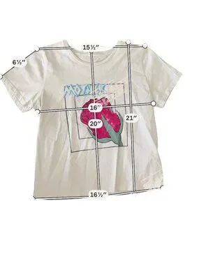 Heavy petal. A classic crewneck with short sleeves, a cropped hem and a slim fit. Made from 100% cotton, the white tee features a faded rose graphic and text on the front. Size M.