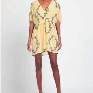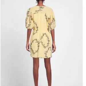 GANNI Pale Banana Floral Georgette Plisse Mini Dress Yellow NWT size 8/10