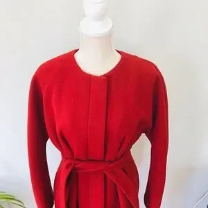 Gucci | red wool belted coat. Absolutely GORGEOUS and in perfect condition. I've only worn it three times to a few black-tie events. I still have the original tags and will include them with the purchase. MSRP was $2,700 from the Gucci store in Chicago. No rips, stains, or flaws. Stunning, classy tailored fit coat. Euro size 48. US size 12. I fit in it when I was a size 14, and I do have a larger chest, so it has some forgiveness.