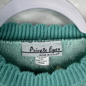 Vintage Private Eyes Teal Floral Rose Knit Sweater Metallic Lurex Crew Neck USA