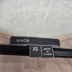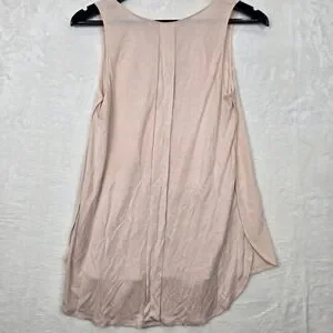 Vince Womens Mixed Media Silk Front Tank Top Blush Pink Scoop Neck XS