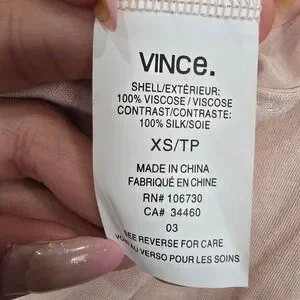 Vince sleeveless shell top in a delicate blush pink hue features a sophisticated mixed-media construction. The front is crafted from smooth silk, while the back is designed with soft, breathable viscose and a central pleat for added movement. This versatile piece is finished with a scoop neckline and a high-low curved hem, making it an ideal layering staple or a standalone piece for polished ensembles.