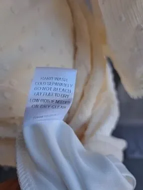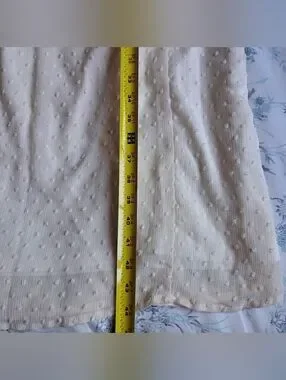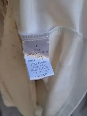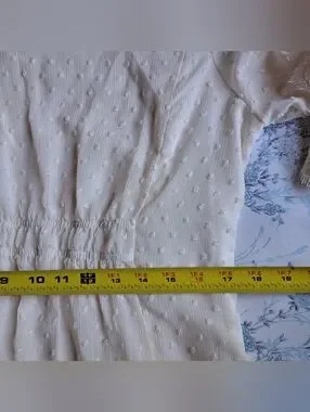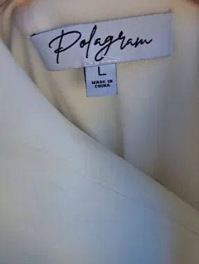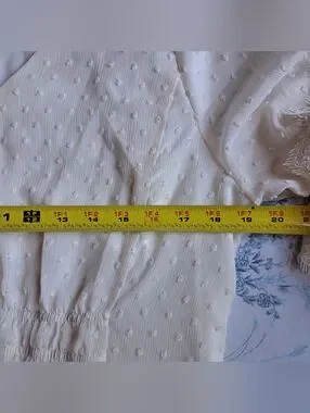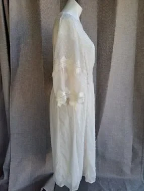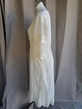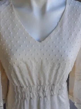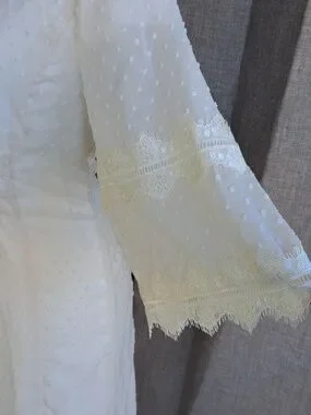 Polagram Ivory Swiss Dot Modest Midi Dress Lace Sleeves V-Neck Size L