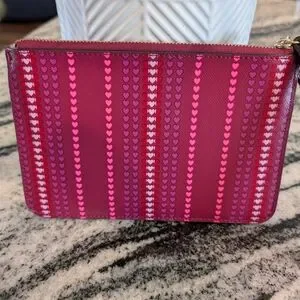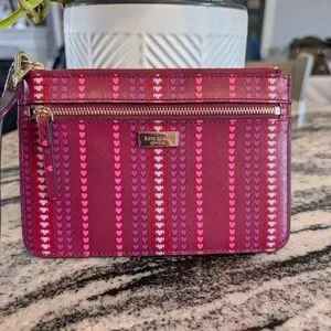 kate spade Heart-Print Pink & Burgundy Wristlet Clutch